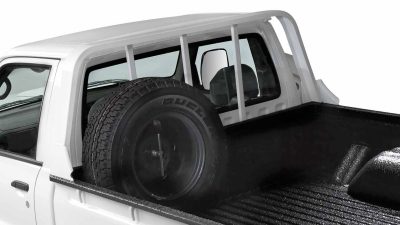 CAB PROTECTOR Add another tie down point for your cargo and keep your cab window protected against sliding objects with the available cab protector. One less worry when carrying big loads.